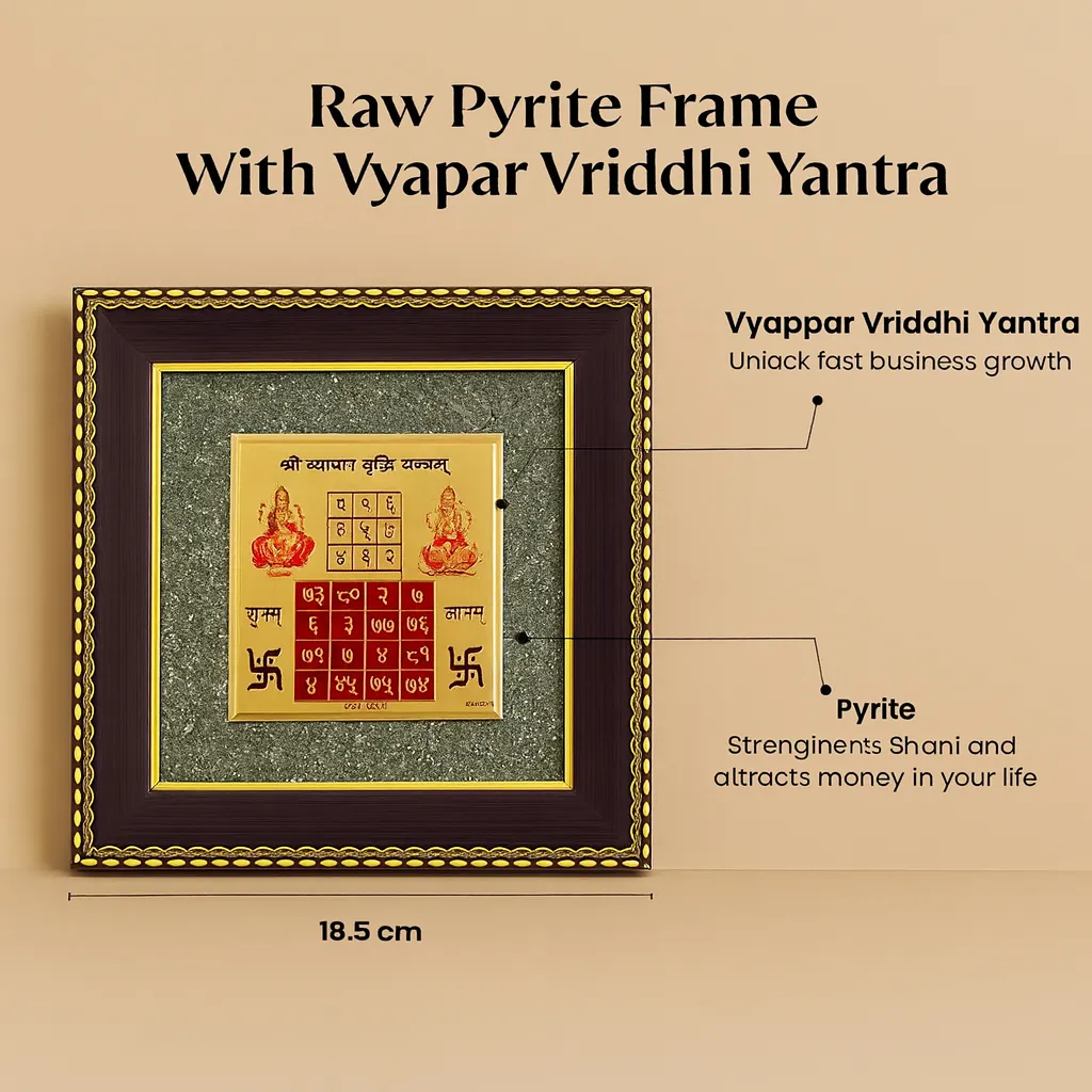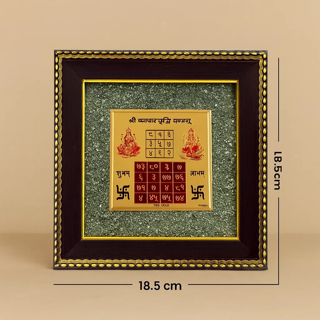 Bring financial abundance into your life with the Vyapar Vriddhi Yantra on Raw Pyrite Frame by Dhumra Gems.